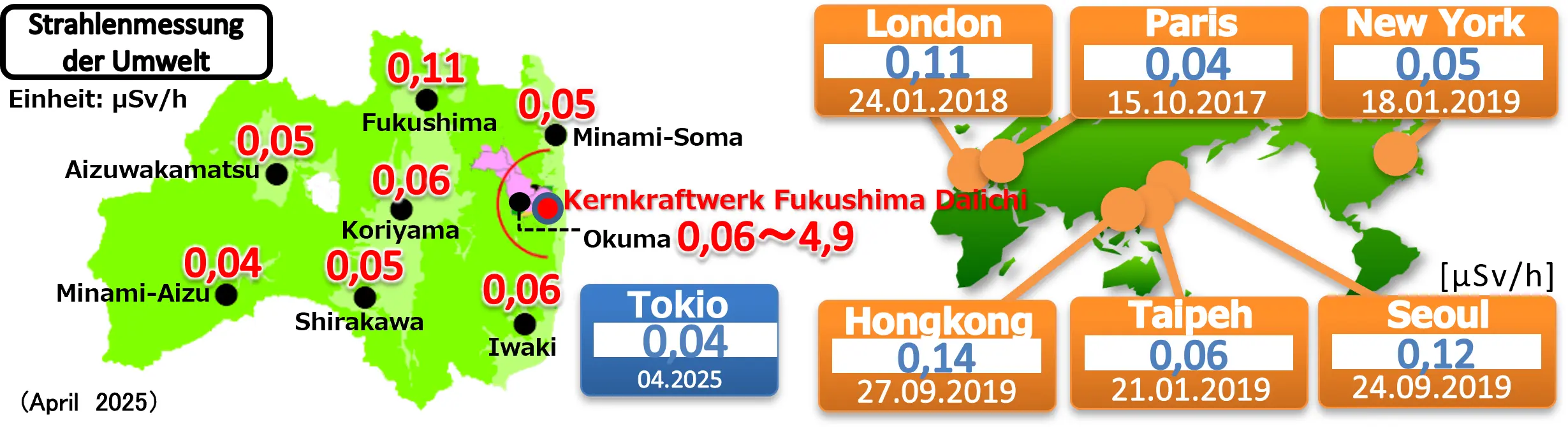 Ende März 2018 erfolgte die flächendeckende Dekontamination in Wohngebieten der Präfektur. Die Luftstrahlungswerte der Präfektur ähneln nun den Werten ausländischer Großstädte.