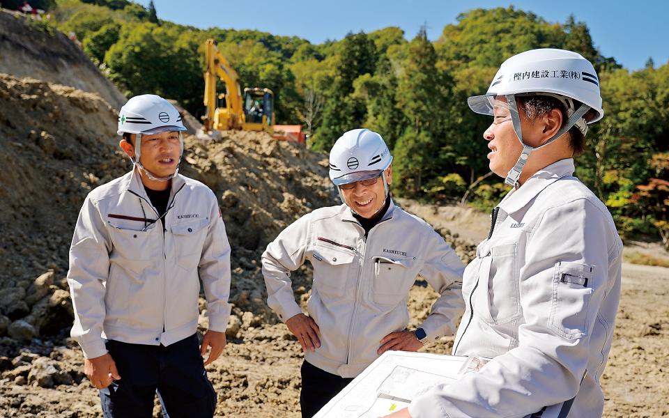 建設工事や土木工事を通して、地域の皆さまの暮らしを支えています。自然災害などの緊急時には迅速に対応し、安心と安全を届けている会社です。社員一人ひとりが健康で幸せに働ける職場を目指し、さまざまな取り組みを行っています。若手社員の育成にも力を入れ、IT機器の導入による業務効率化や技術継承を進めています。