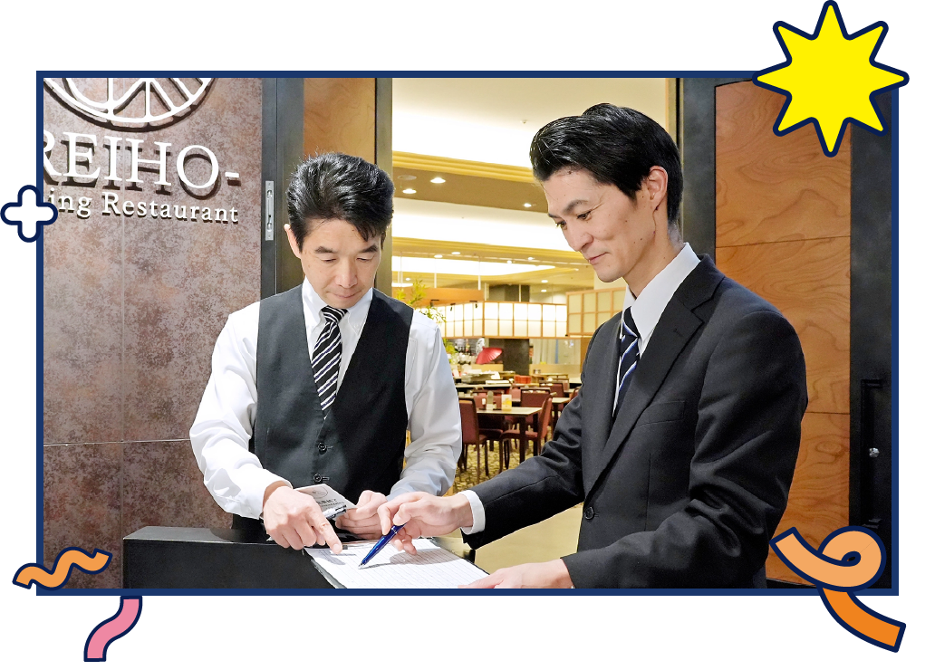 • 新人スタッフの育成にしっかり取り組んでいきたいと考えています。将来的には、運営や経営といったマネジメント業務にも携わり、ホテルの未来を支える存在を目指しています。